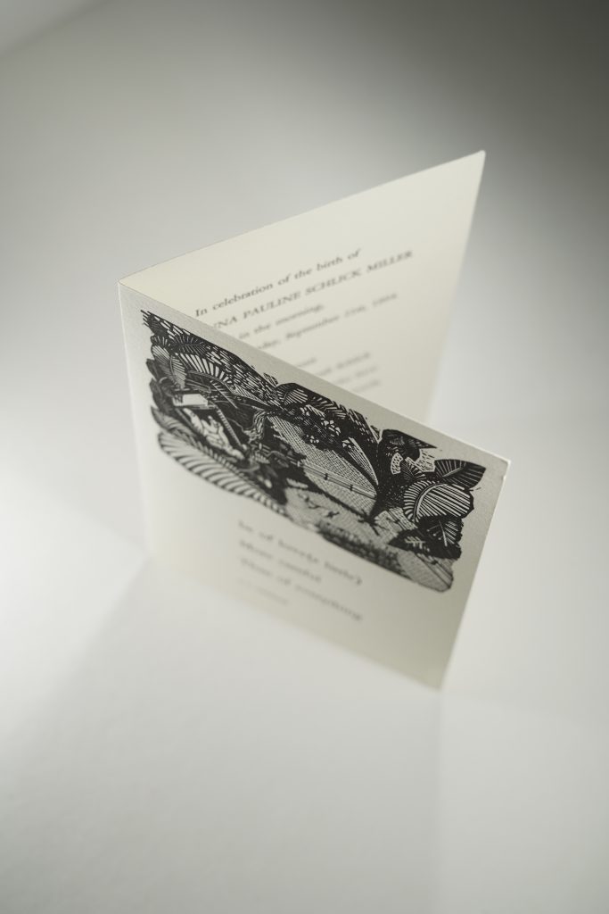 be of love(a little)Kent Aldrich2020-07-02T11:03:32-06:00 Project Description A nice little birth announcement with an in-house wood engraving of a babe in a cradle in a tree top.